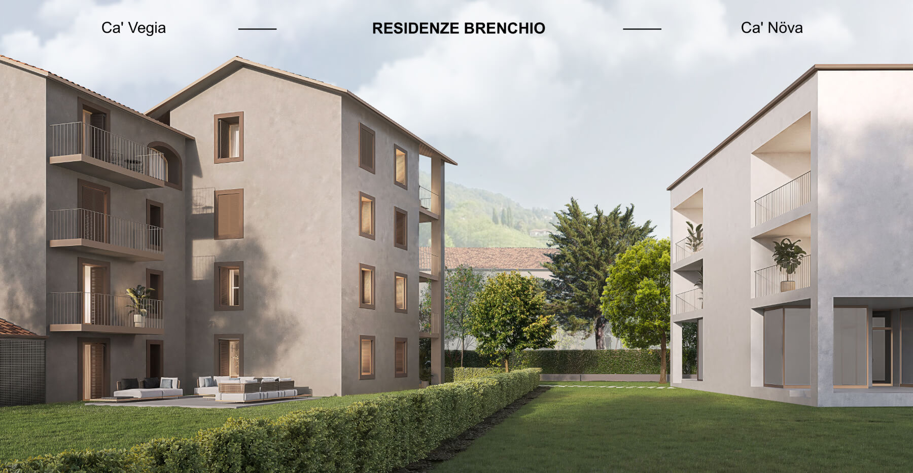 Le Residenze Brenchio rappresentano uno spazio esclusivo dove la sostenibilità e il comfort si fondono armoniosamente per creare un ambiente ideale in cui vivere e crescere. Si compongono di due blocchi abitativi, la Ca’ Vegia e la Ca’ Növa. La Ca’ Vegia sorge all’intero del Nucleo storico e si erge su 4 piani offrendo 4 appartamenti per piano, 3 ½ dotati di spazi esterni, posteggi, cantine e locali accessori. La Ca’ Növa sorge sulla strada cantonale e si sviluppa su 3 piani. Offre al piano terra un locale adatto ad attività commerciali o amministrative, e sui piani superiori due appartamenti 2 ½ e due appartamenti 3 ½ dotati di posteggi esterni, terrazze e cantine.